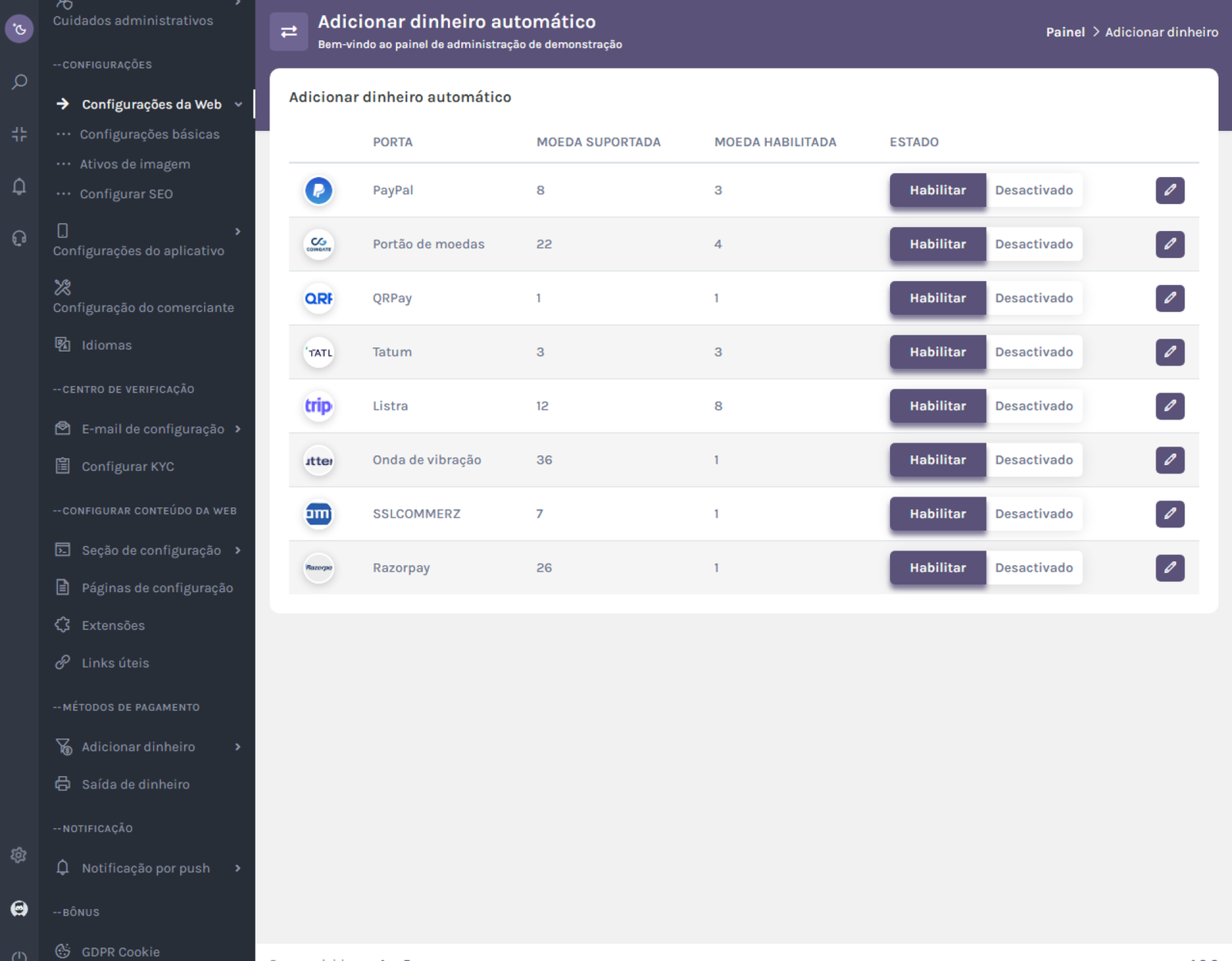 Configurar moeda: defina as configurações de moeda da sua plataforma sem esforço. Adapte a exibição da moeda e o processamento de pagamentos para se alinhar às preferências do seu mercado-alvo.