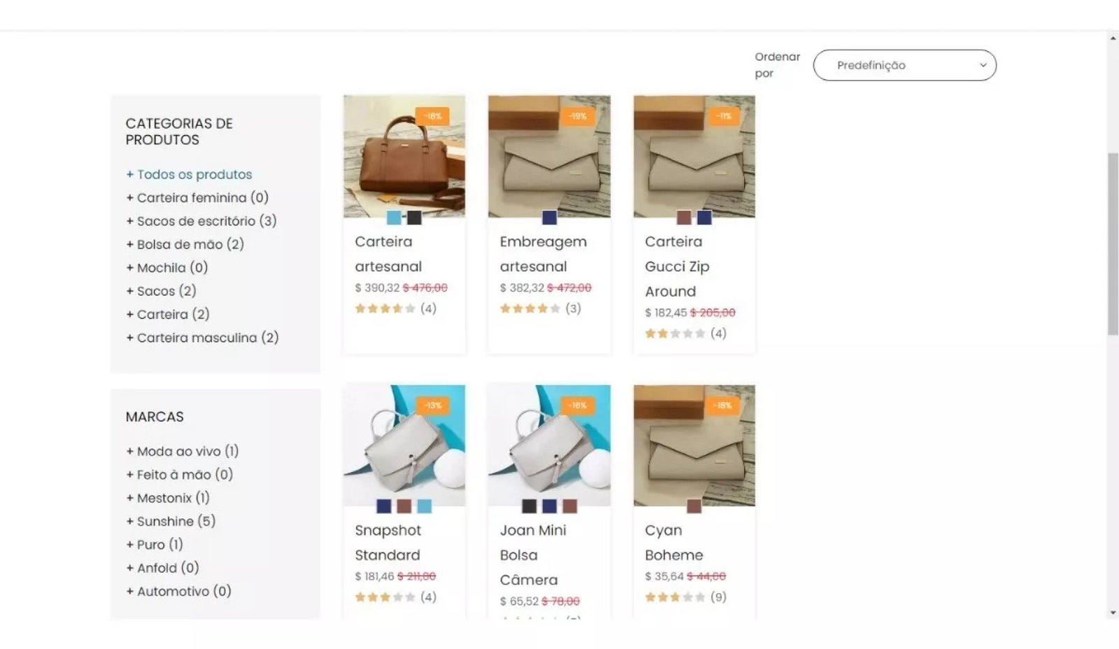 Filtrar produtos (por exemplo, por tamanho, cor, marcas, categorias, etc.)