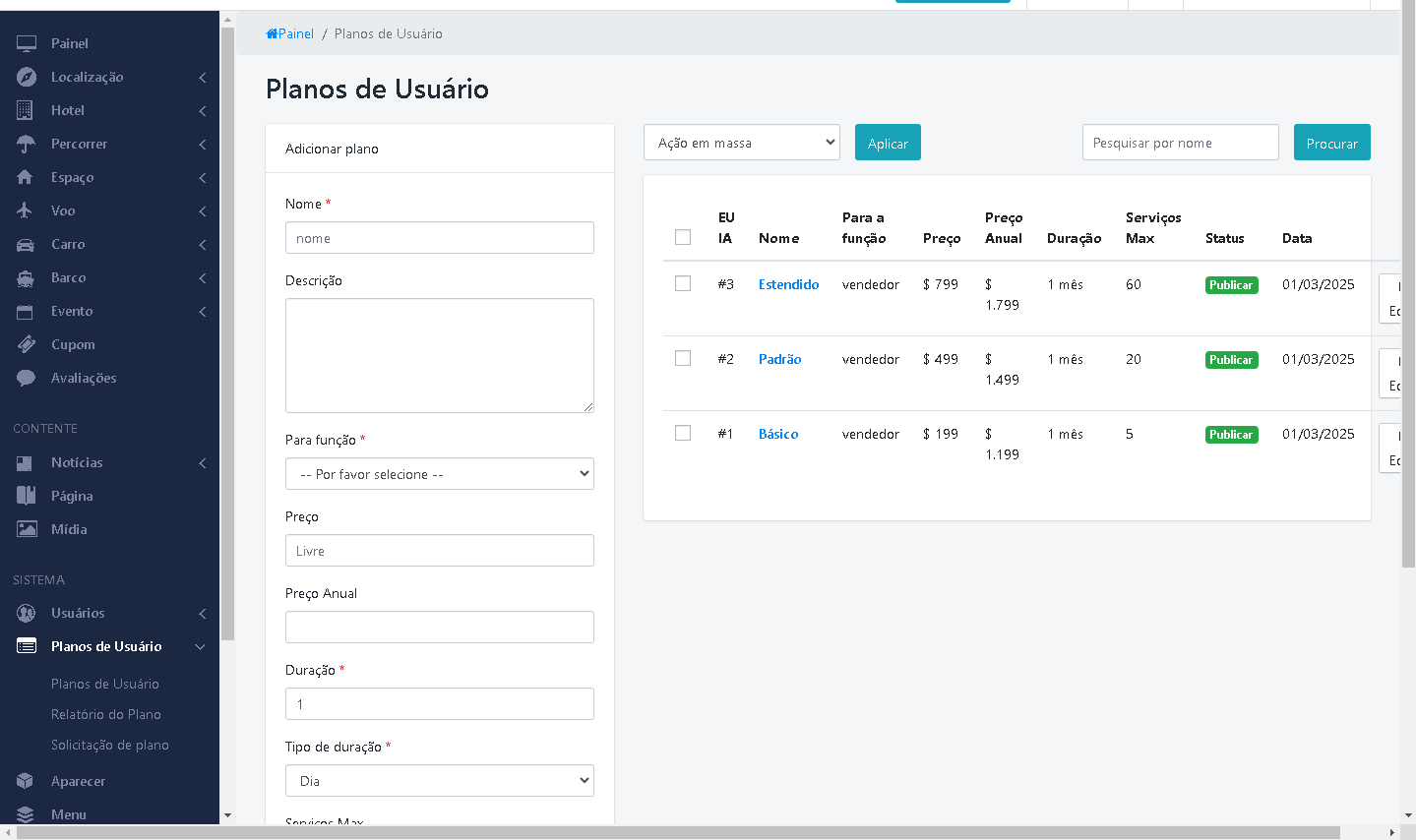 - Sistema de Fornecedores: Permite que você crie um sistema de mercado de reservas.