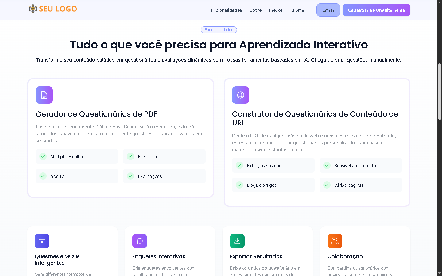 Seja professor, instrutor, empresário ou criador de conteúdo, transforme sua base de conhecimento em perguntas de múltipla escolha em segundos