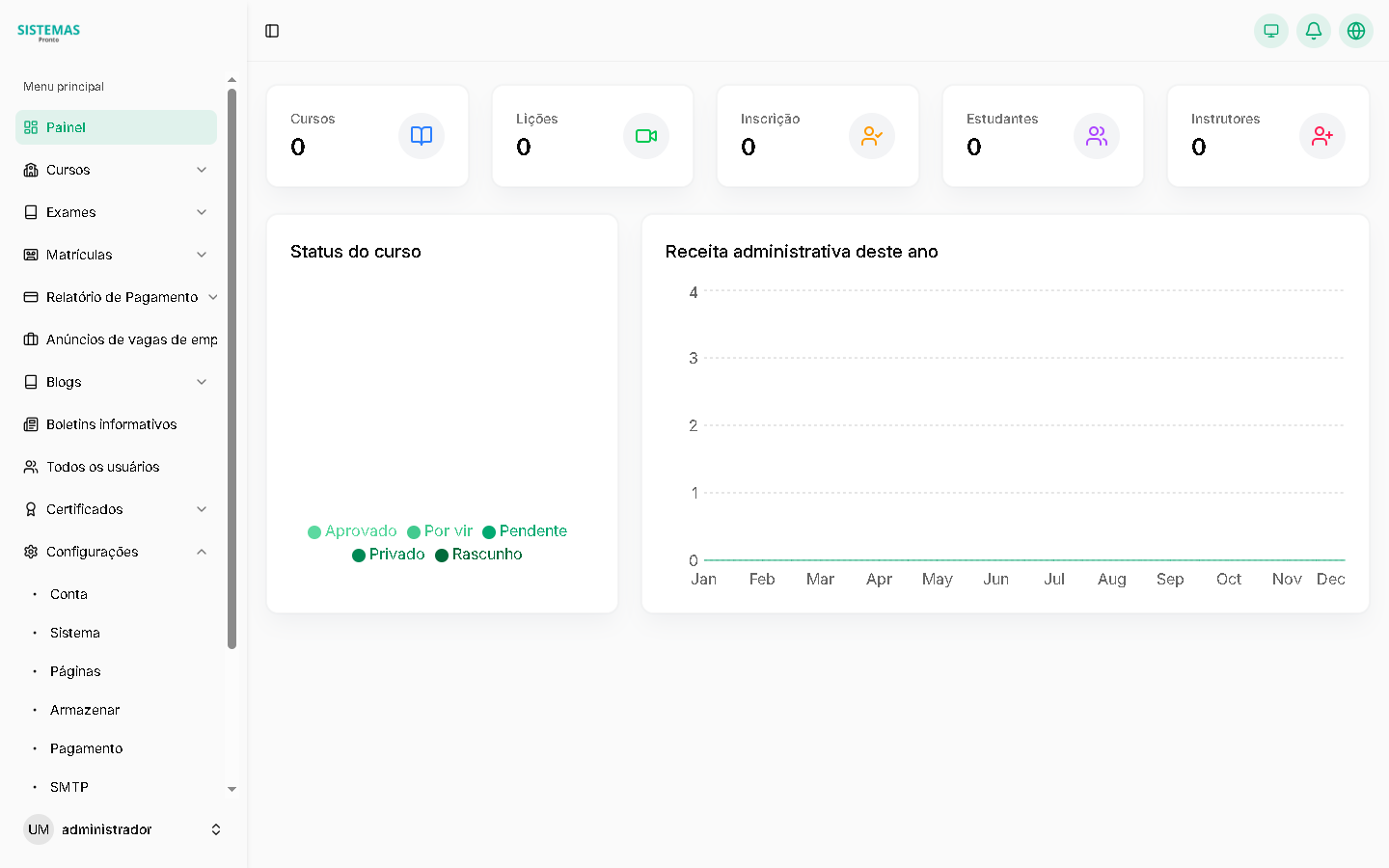 Com um design moderno, funções de usuário flexíveis, integrações de pagamento seguras e suporte para aulas ao vivo, o sistema ajuda você a criar uma plataforma de eLearning profissional sem precisar de conhecimentos de programação.