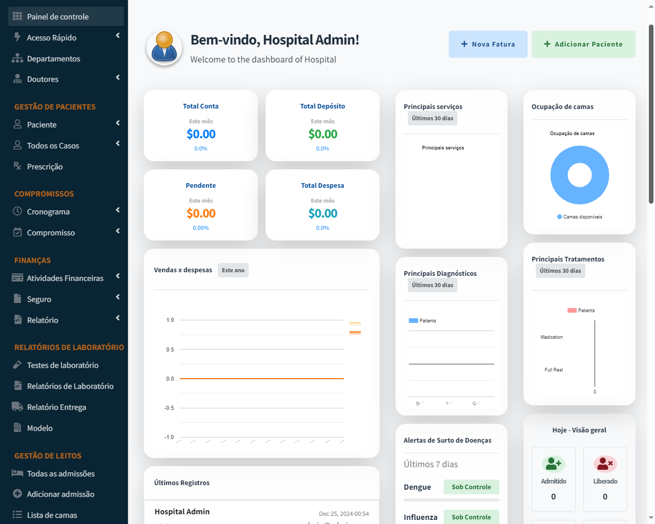 - Faça login como superadministrador e crie hospitais a partir do painel.