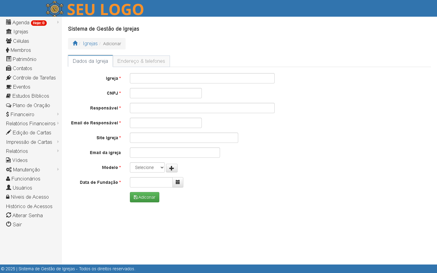 Cadastro e gerenciamento de igrejas e células