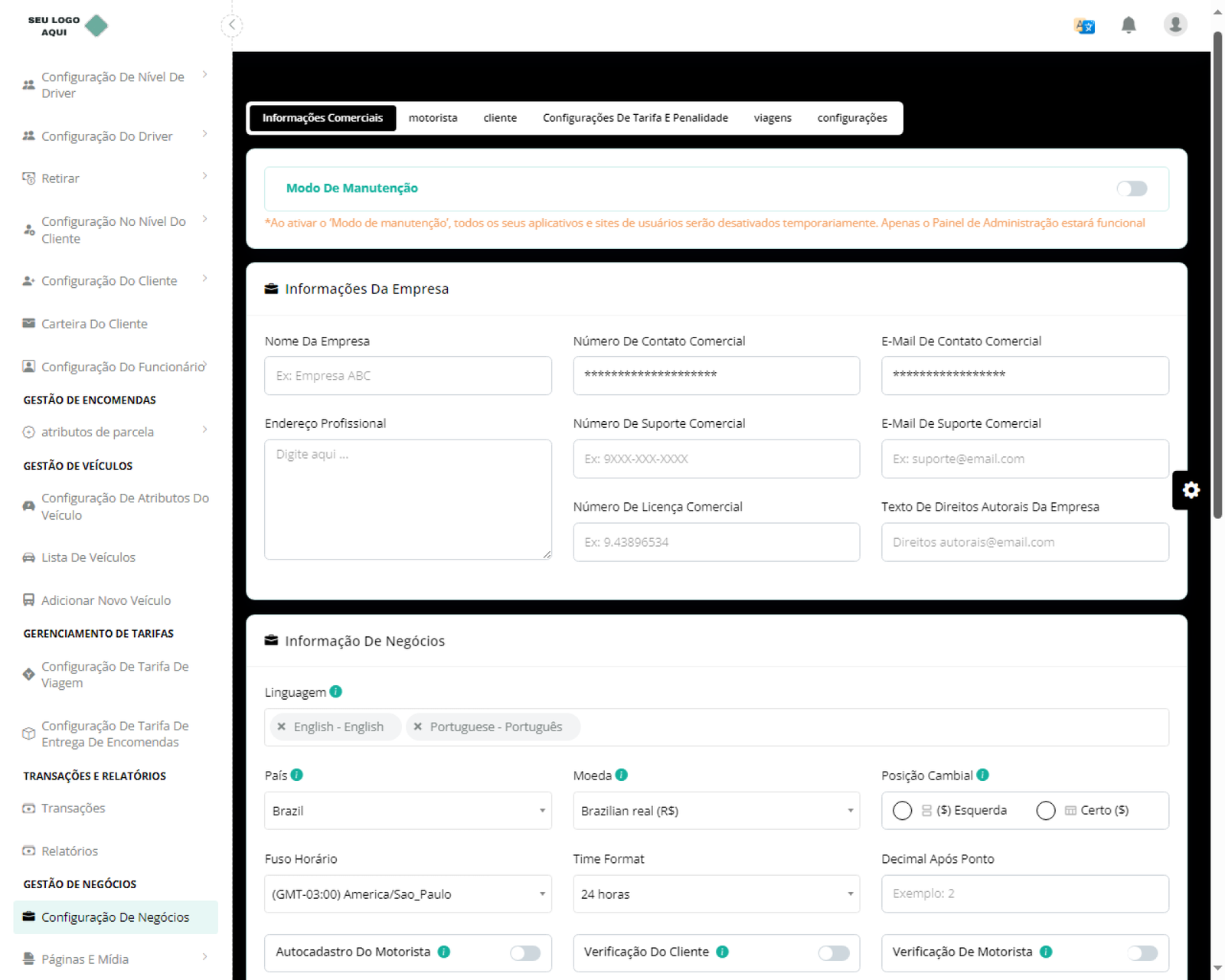 Adicione motoristas e veículos, gerencie clientes e monitore registros de viagens, etc.