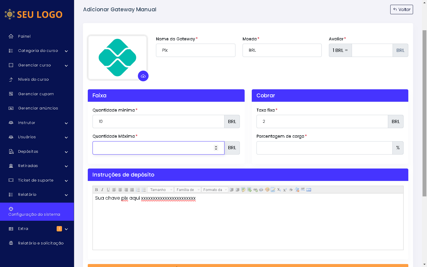 - Gerenciar logotipo e favicon.