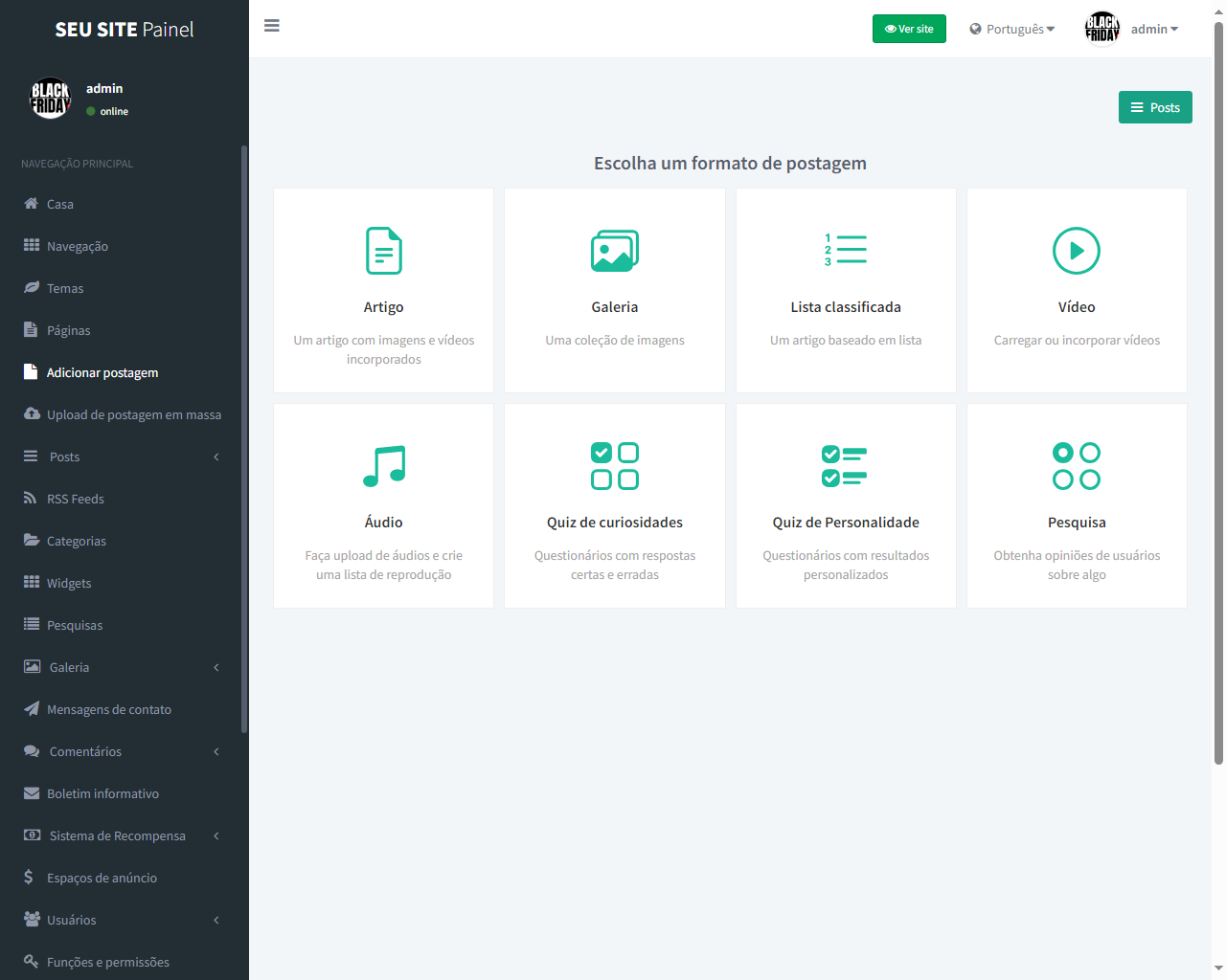 Você pode gerenciar tudo em seu site com seu poderoso painel de administração. É um sistema de vários autores e todos os autores têm seu próprio painel para gerenciar suas postagens. Possui sistema agregador RSS e você pode usá-lo como um script de piloto automático. É seguro, otimizado para SEO, rápido e fácil de usar.